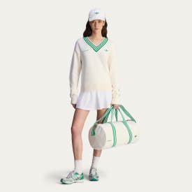 A court classic, this gym bag made in collaboration with Sporty & Rich is crafted from premium canvas material and threaded with a nostalgic tennis aesthetic. The contrast details are subdued but still create an impact with sophisticated ease.
