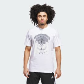Show off your love for the game in this t-shirt from adidas basketball. The cotton build and the loose fit give you a full range of motion on your jumper along with freedom to move up and down the floor. A unique hoops graphic on the chest completes the look.
